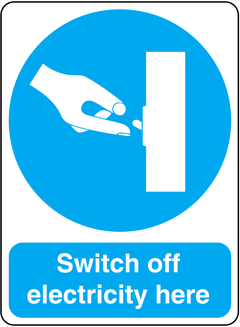 Promote a safer work environment by installing the Mandatory Switch Off Electricity Here Sign today!