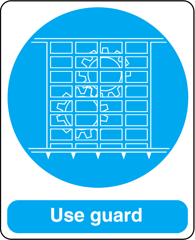 – Clear Instructions: Bold lettering and universally recognized symbols clearly communicate the need for guard presence, enhancing compliance.