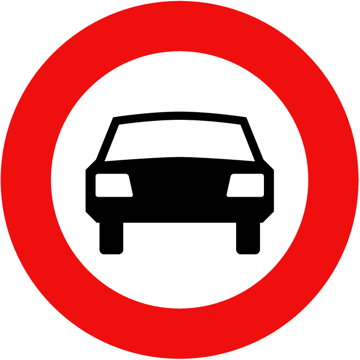 Implement the “No Cars Allowed Road Sign” to enhance pedestrian safety and maintain controlled access in designated areas.