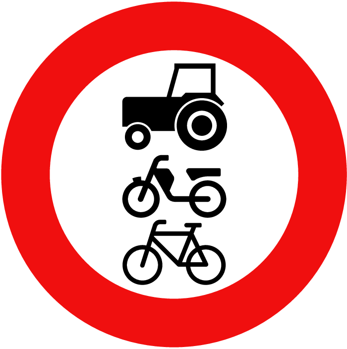 Implement the “No Entry for Motor Vehicles, Bicycles, and Agricultural Vehicles Road Sign” to effectively manage traffic flow and enhance safety in your designated areas.