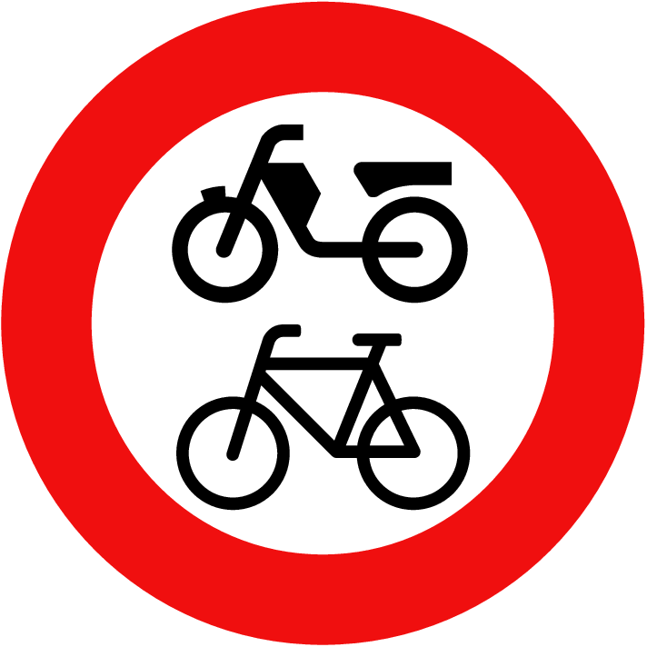 – Dual Prohibition Message: Clearly communicates the restriction of both mopeds and bicycles with an intuitive design that all road users can understand.