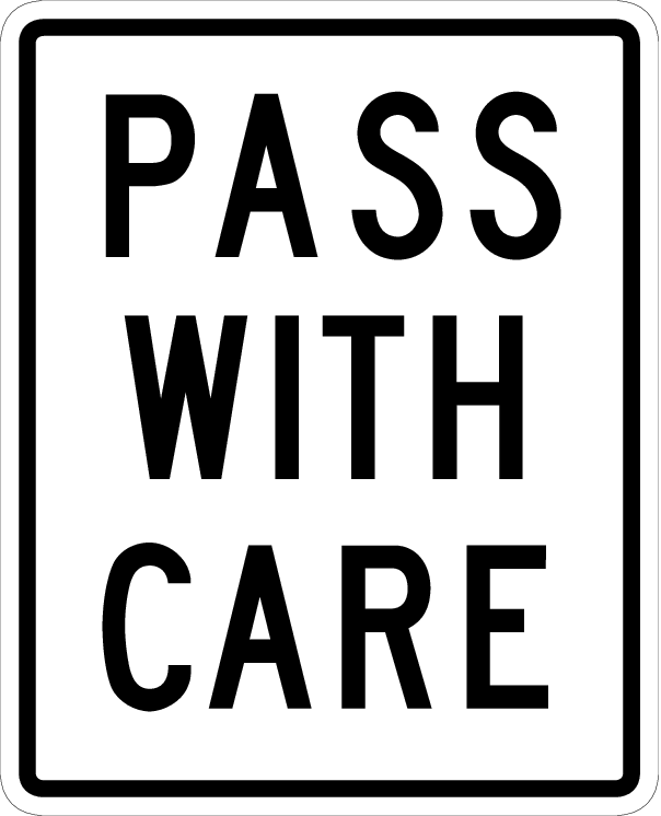 Made from high-quality, weather-resistant materials, the Pass With Care Road Sign is designed for long-lasting visibility in various conditions. Its clear graphics and bright colors ensure that it captures the attention of drivers, encouraging them to slow down and proceed with caution when passing other vehicles.