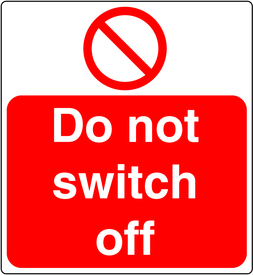 Protect your equipment and ensure operational efficiency with our Prohibition Do Not Switch Off Sign. This vital sign clearly indicates that certain machinery or systems must remain powered on, preventing accidental shutdowns that could lead to costly downtime or safety hazards.