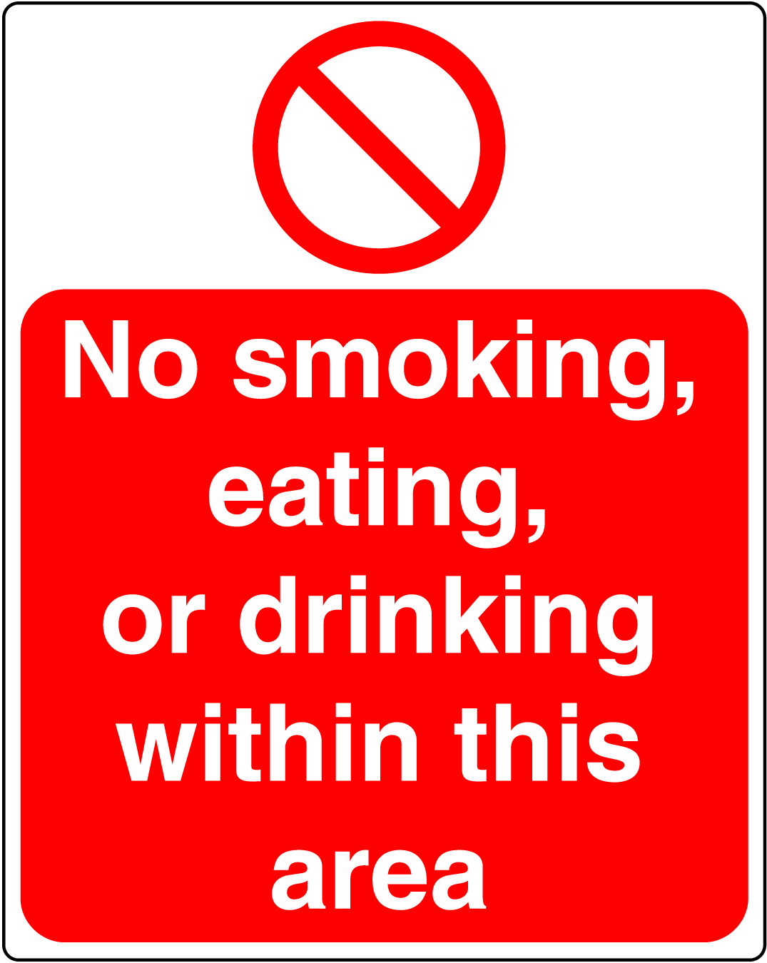 Promote health and safety by displaying our Prohibition No Smoking, Eating Sign in your facility today!