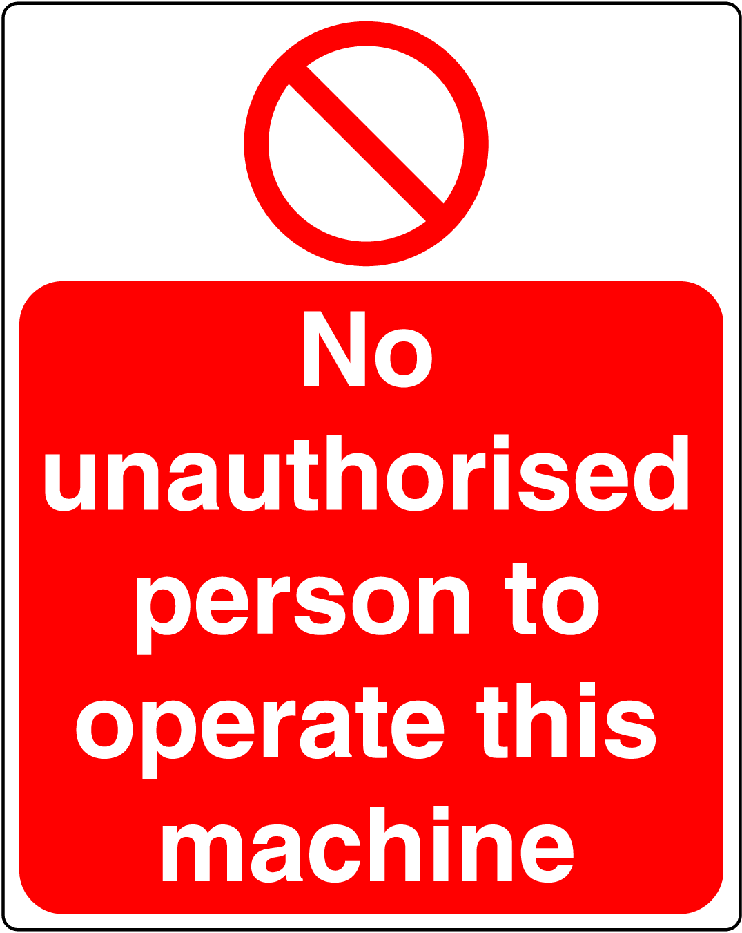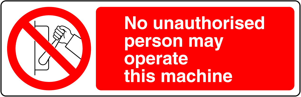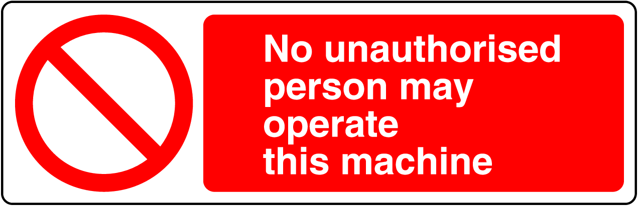 Protect your workforce and equipment by displaying our Prohibition No Unauthorized Person May Operate This Machine Sign!