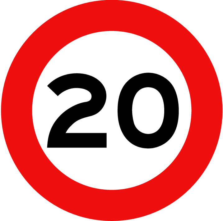 – High Visibility: The bold “20” and bright colors ensure that the sign is easily visible to all drivers.