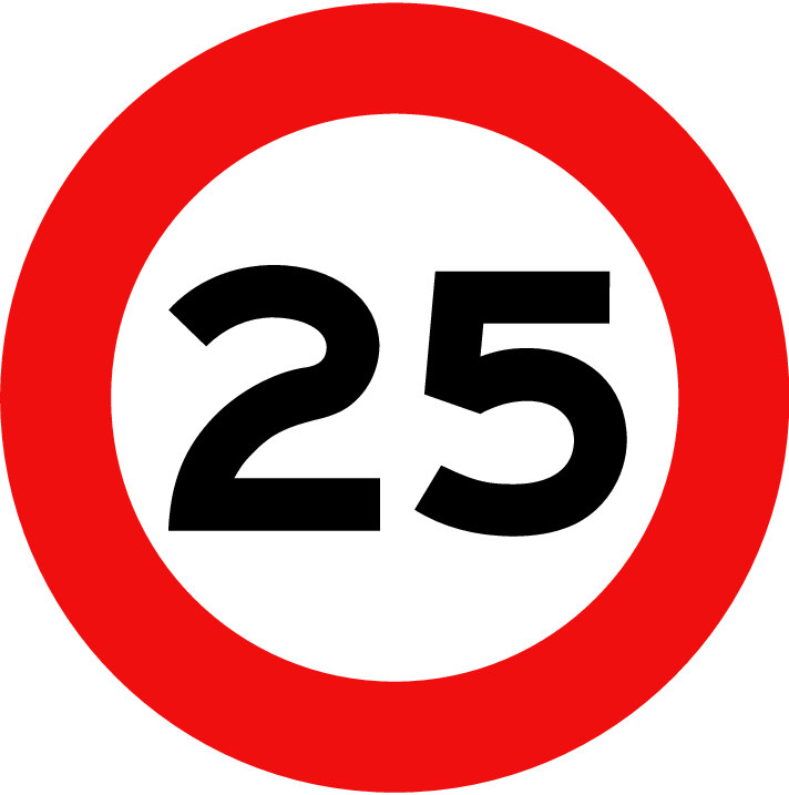 – High Visibility: The prominent “25” ensures easy recognition from a distance, allowing drivers ample time to adjust their speed.