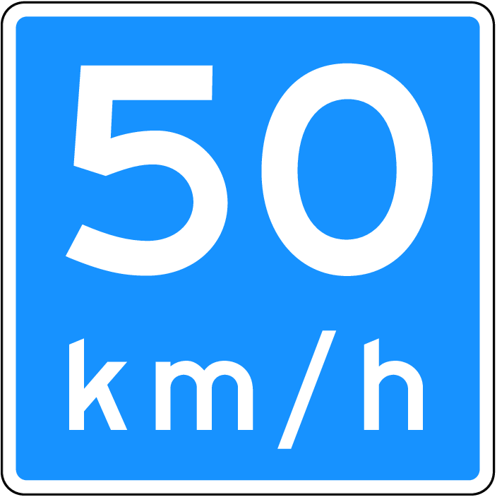 – Clear Visibility: The bold “50 km/h” lettering ensures easy readability from a distance, allowing drivers to adjust their speed accordingly.
