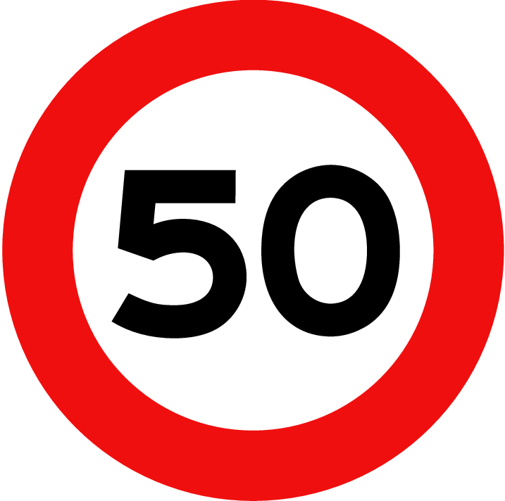 – Clear Visibility: The prominent “50” is designed for easy recognition from a distance, ensuring drivers are well-informed of the speed limit.