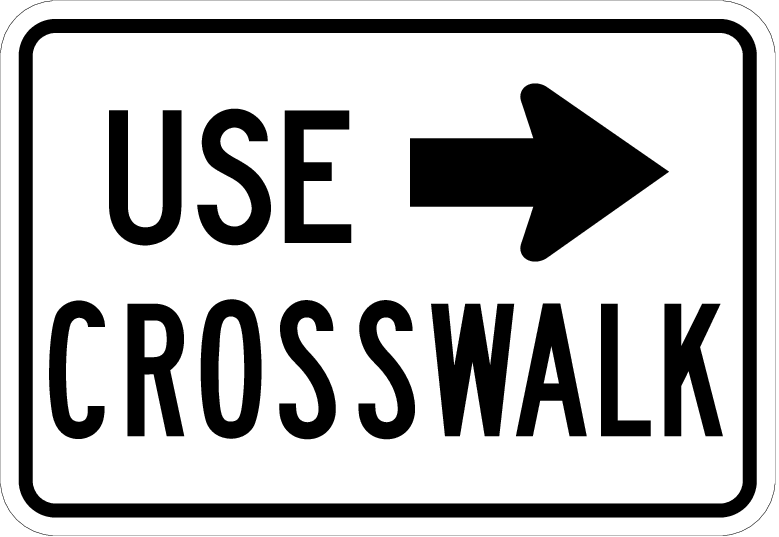 Ensure pedestrian safety with our Use Crosswalk Road Sign. This essential traffic sign serves as a clear reminder for drivers to yield to pedestrians at designated crosswalks, promoting safer interactions between vehicles and foot traffic.