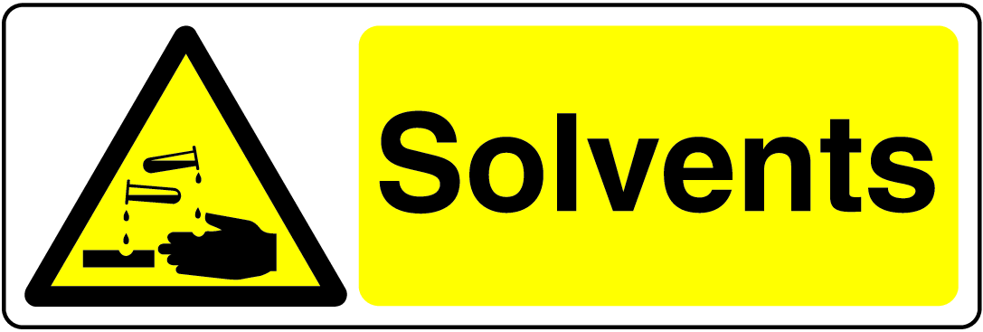 Display the Warning Solvents Sign prominently to effectively communicate potential hazards related to solvent usage and storage.